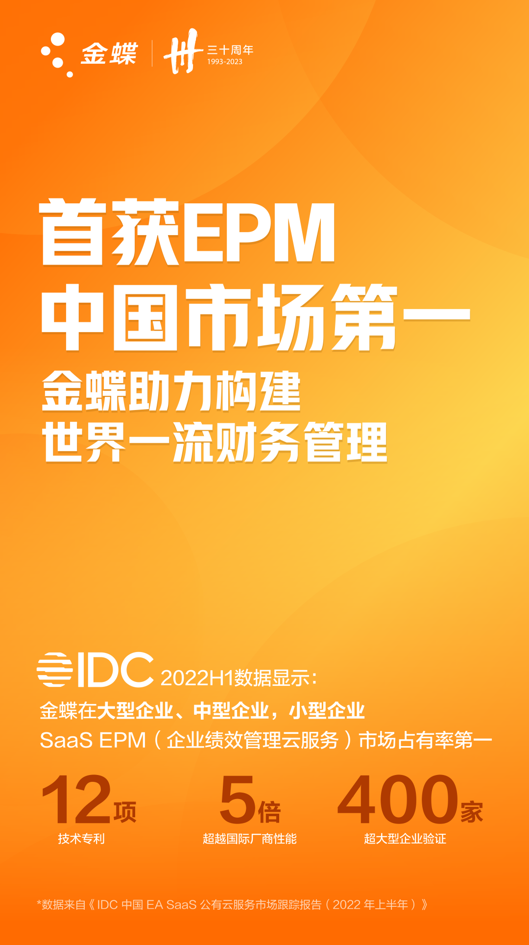 世界一流,中國第一!金蝶EPM奪冠IDC中國企業績效管理云市場!