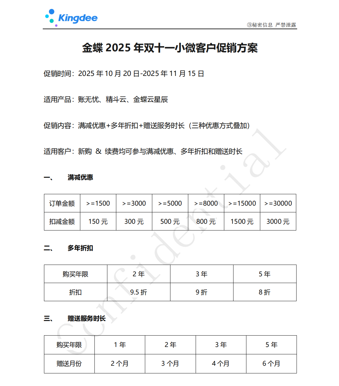 2025年10月20日前夕,洛陽金蝶經銷商-洛陽驍智軟件 從金蝶總部市場渠道部和網站通知獲悉,在2025年雙11來臨前,金蝶總部發文,精斗云、云星辰、賬無憂 新老客戶 新購、續費 促銷活動;