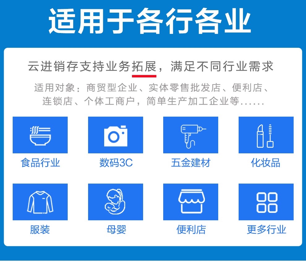 行業覆蓋:服裝鞋帽、數碼電器、母嬰用品、食品飲料、文體辦公、工業材料、家居裝飾、醫藥器械、財稅服務等領域