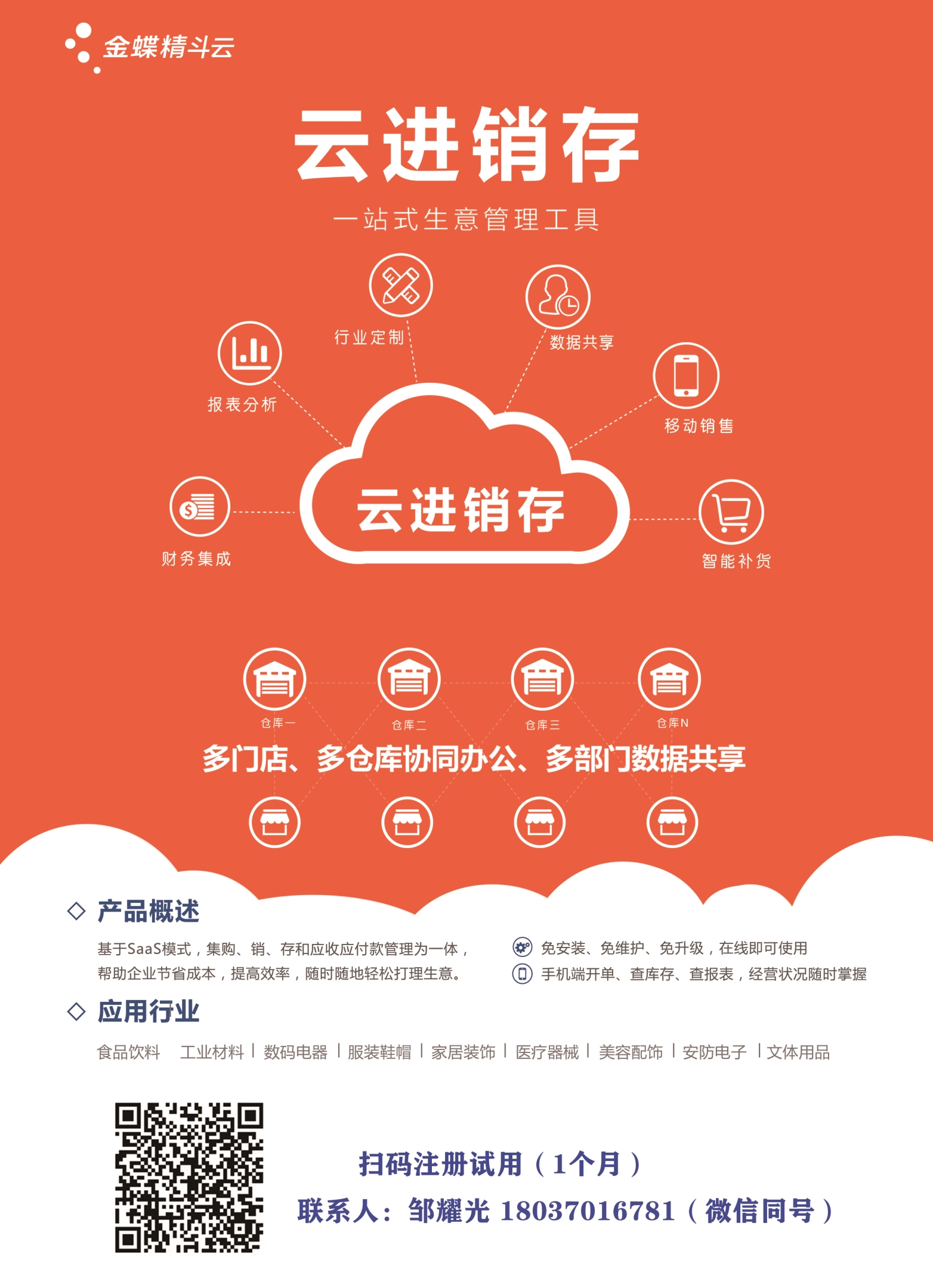 精斗云-云進銷存,掃描注冊試用 二維碼如下圖海報: