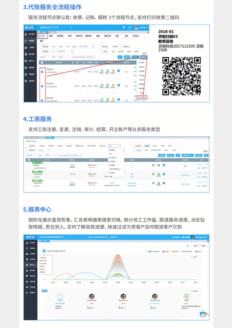7.自定義工作流程: 工商、代賬服務流程管理分工明確、時間進度跟蹤;