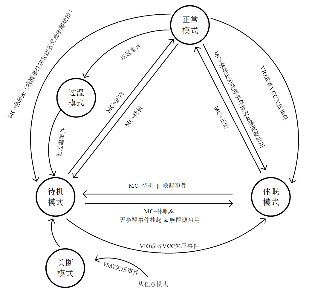 • 支持5種工作模式,分別是:正常、待機、休眠、過溫和關(guān)斷模式;