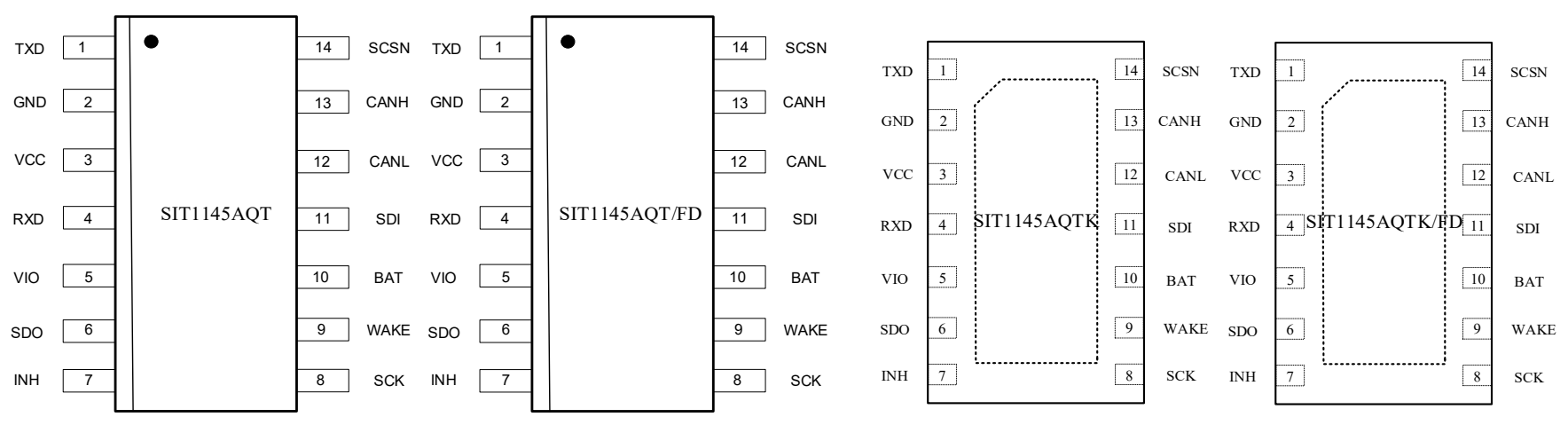三、SIT1145AQ CAN FD收發(fā)器封裝及引腳功能