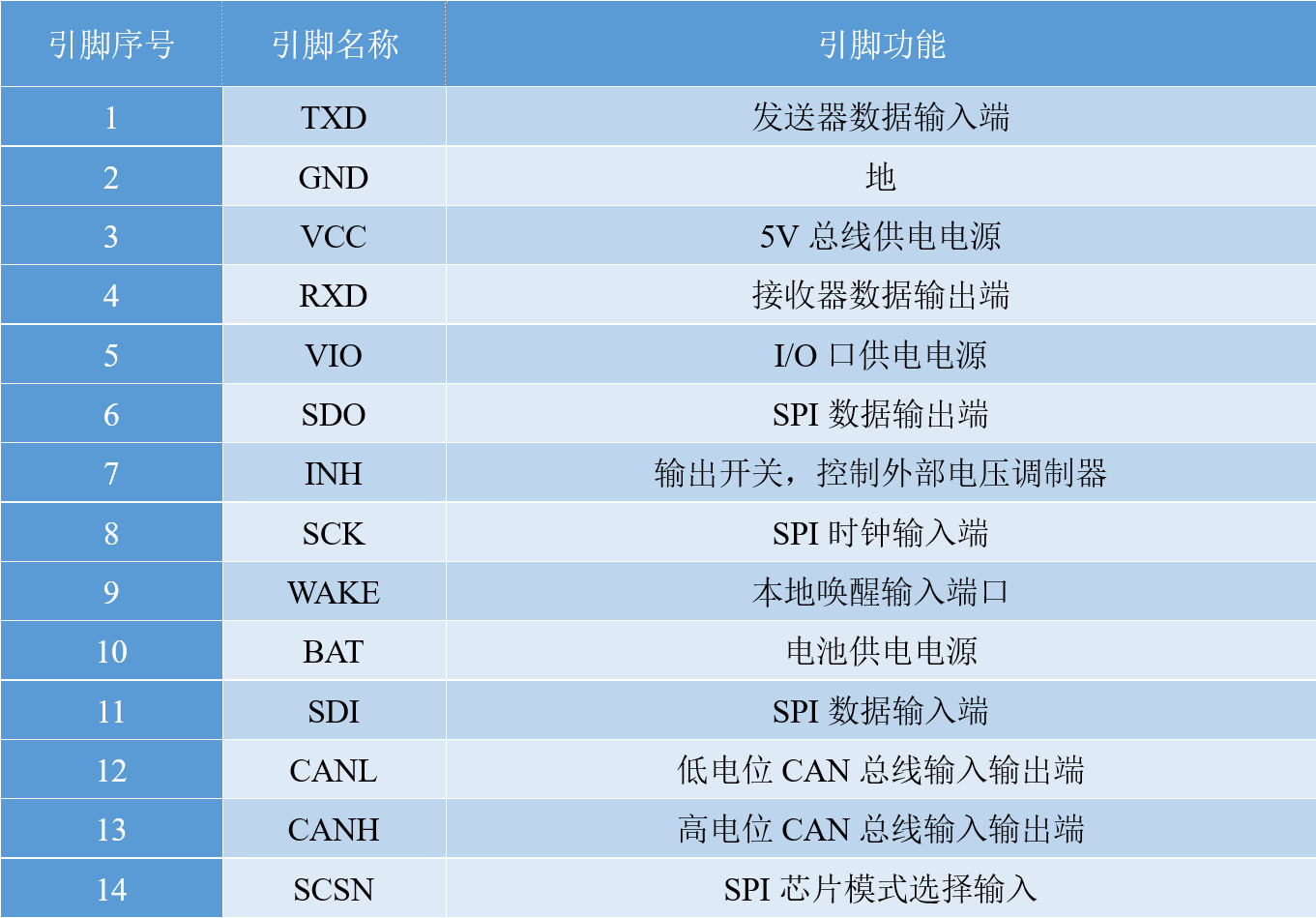 • SPI 接口用于收發(fā)器控制和狀態(tài)信息檢索,支持正常模式4M速率,支持休眠模式1M速率;