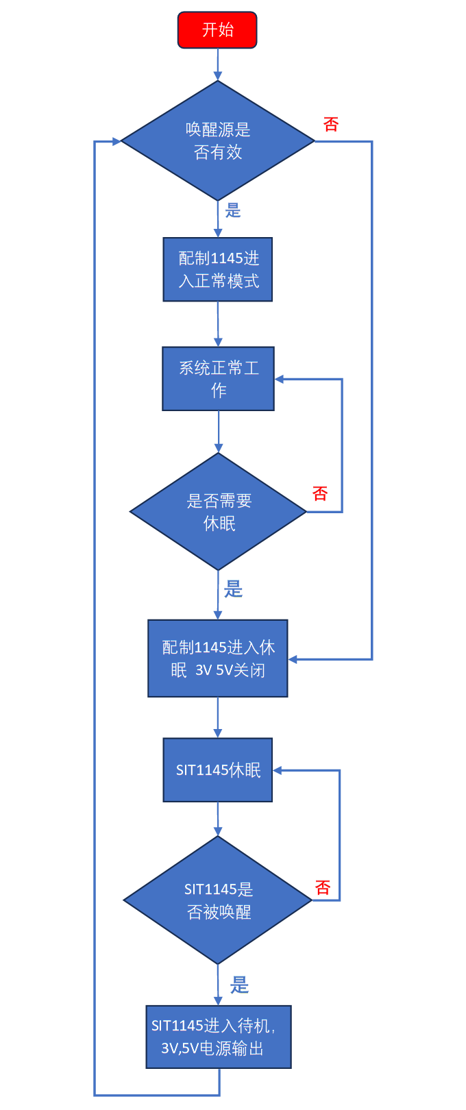 e. 等待喚醒源。當(dāng)有喚醒源使能后,SIT1145AQ進(jìn)入待機模式。