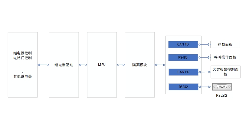 用戶操作控制面板信號通過CAN/RS485總線傳遞給MPU實現樓層的選擇、電梯門的開關等控制。